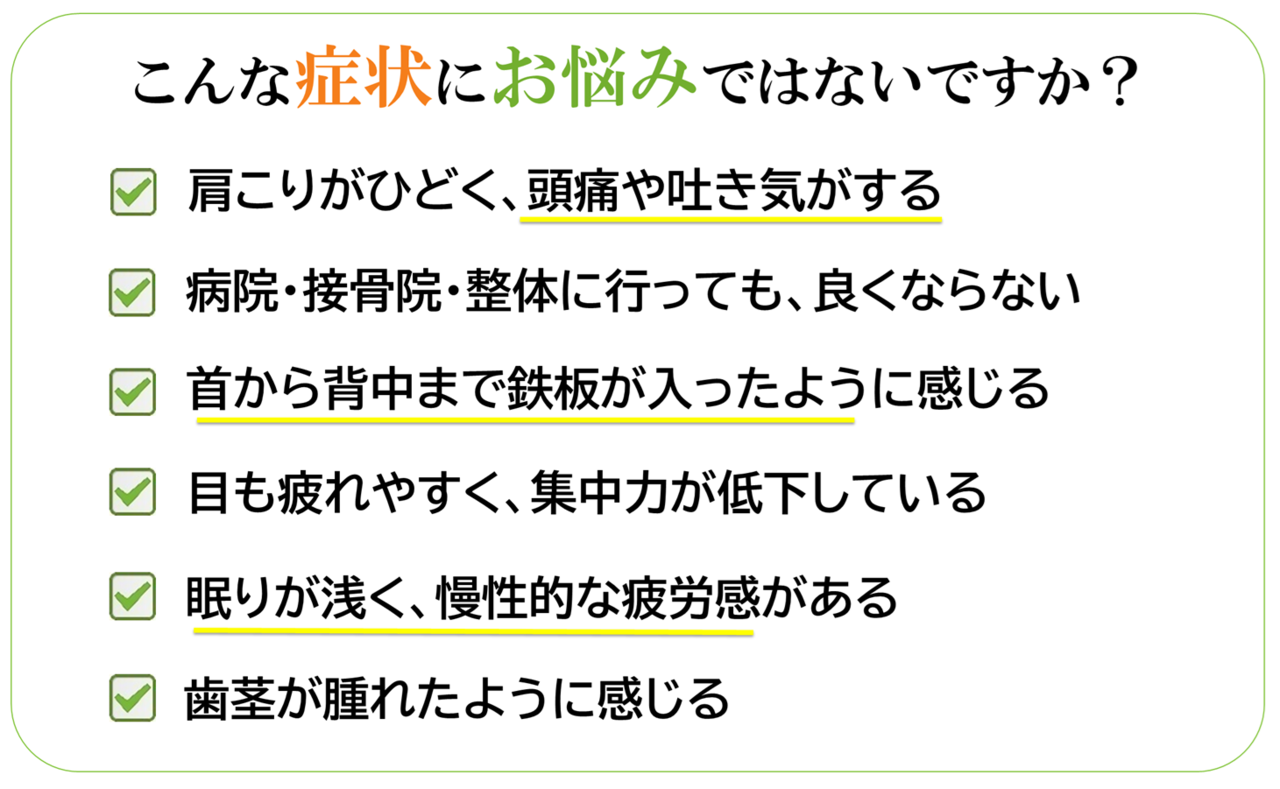 私は長年、ひどい頭痛や首の痛みに悩まされ、後頭部に激痛が走ることもありました。脳外科で検査をしても異常なし。首コリが原因の緊張性頭痛だとわかったのは数年前のことでした。
